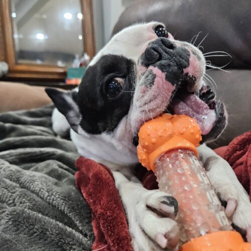 Axel is a charming 5-year-old Frenchie mix with a playful spirit and a heart full of love! He has a gentle demeanor and is known for his friendly nature. Axel has tested well with cats, showing his easygoing personality, and he particularly prefers the company of female dogs.