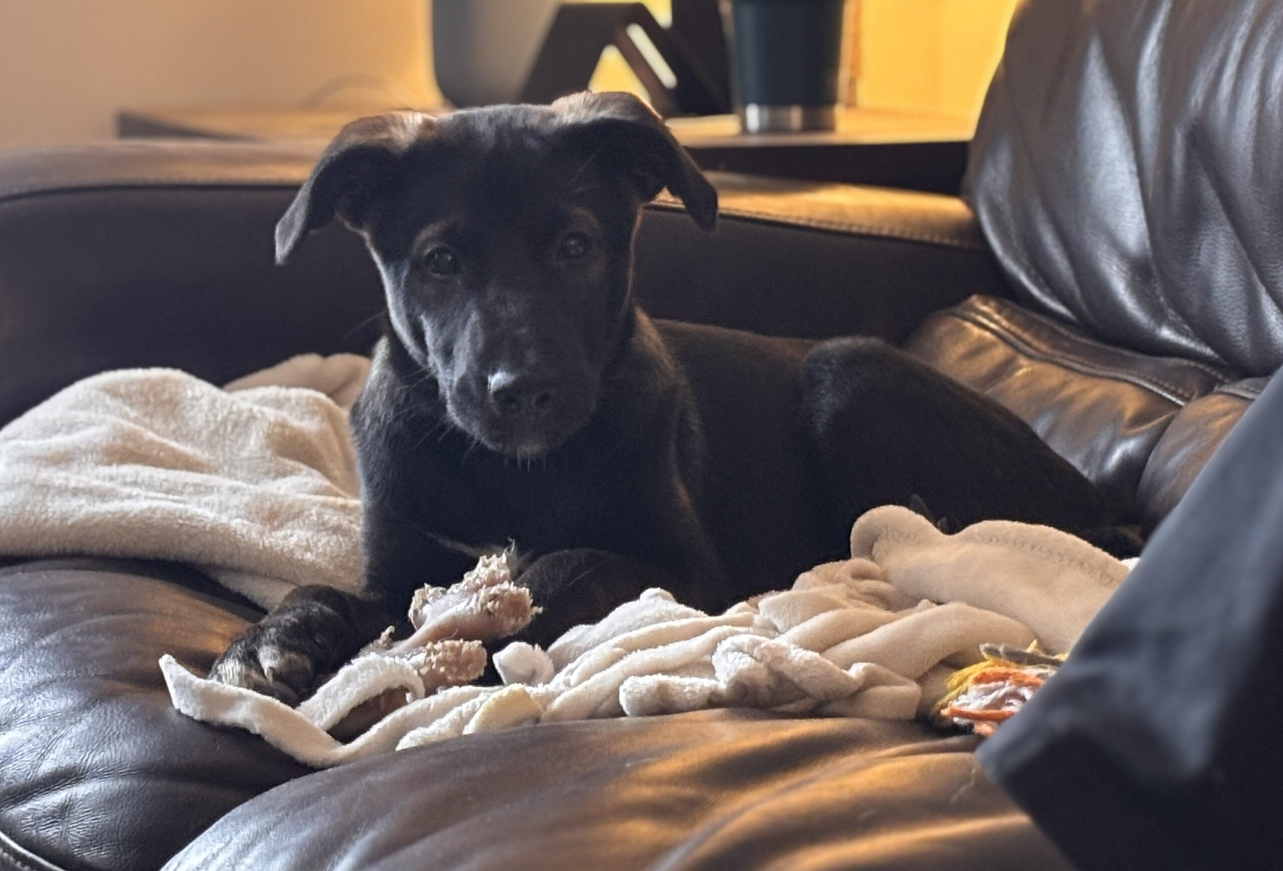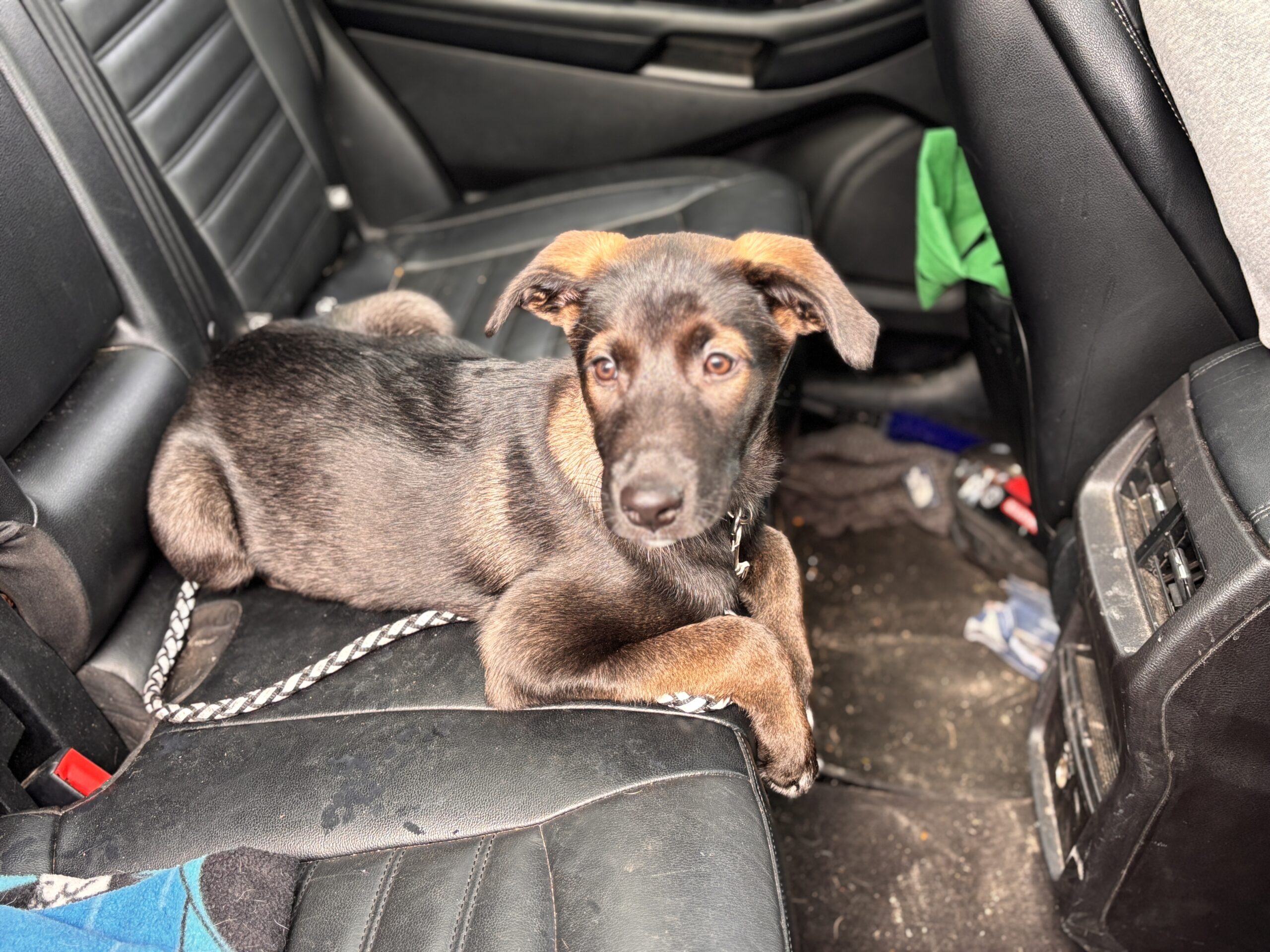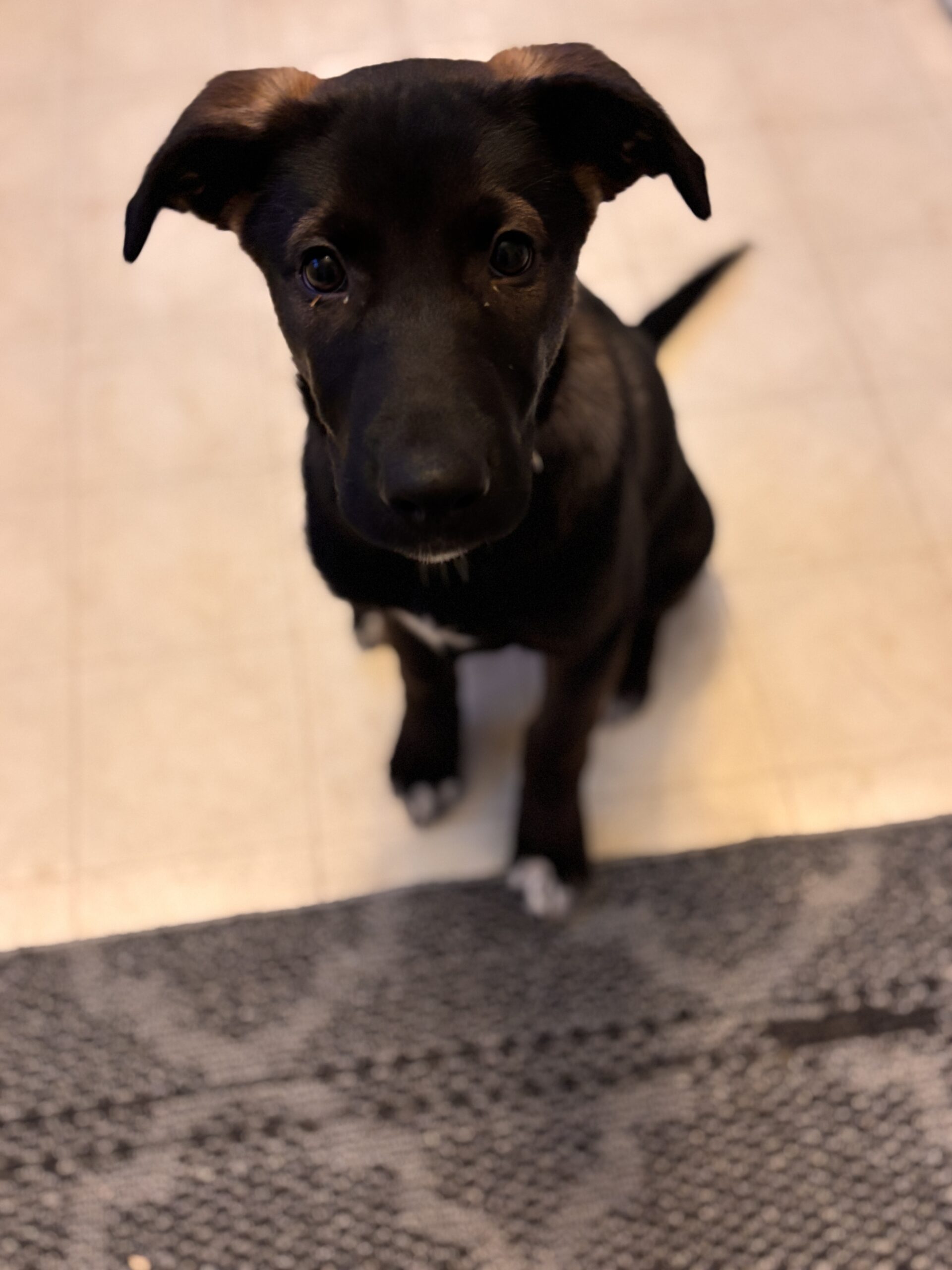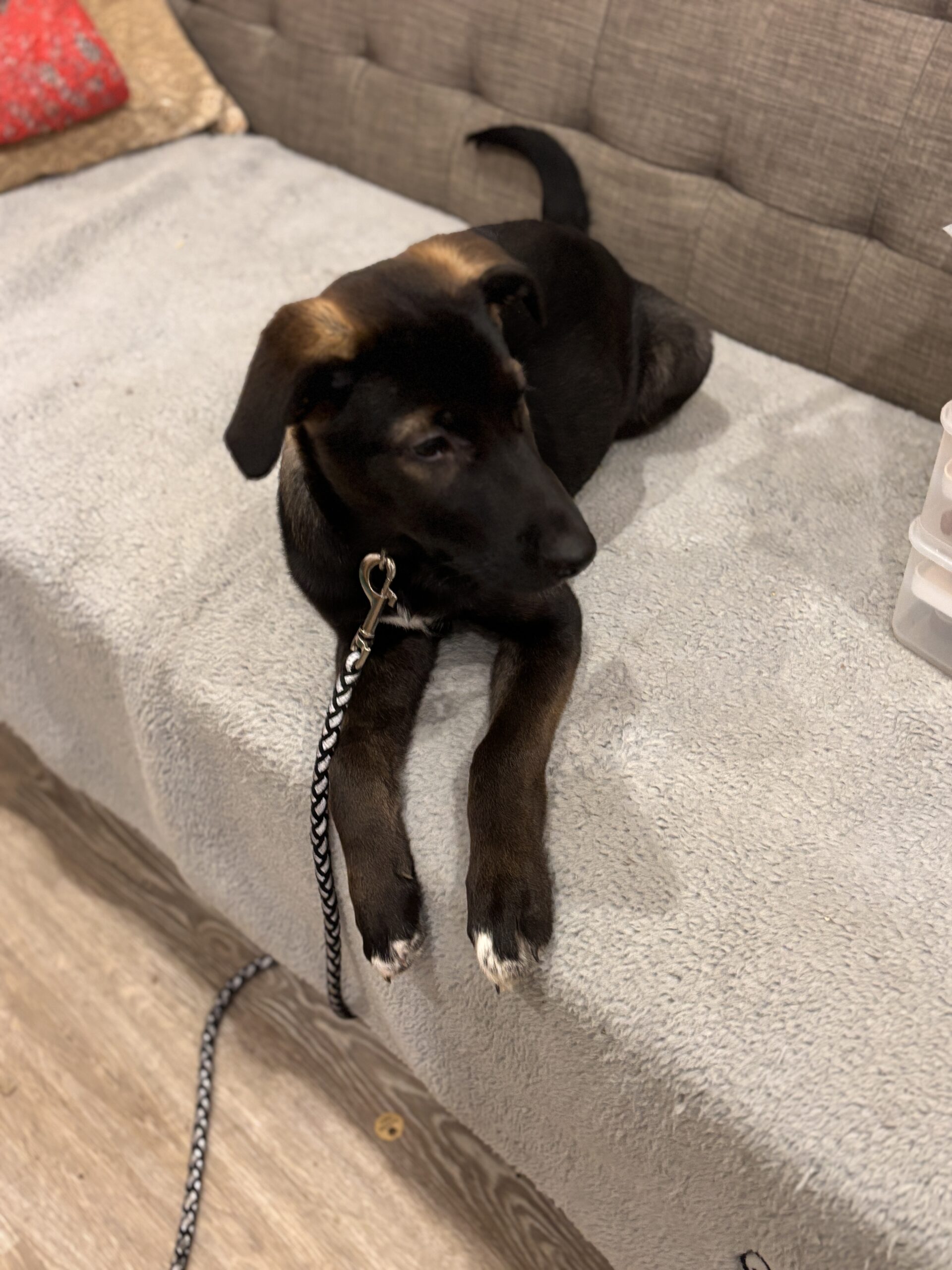 This sweet little pup is a German Shepherd/Lab mix with a heart full of love and a playful spirit. Betsy is doing wonderfully with crate and house training, and she’s already mastered the sit command!