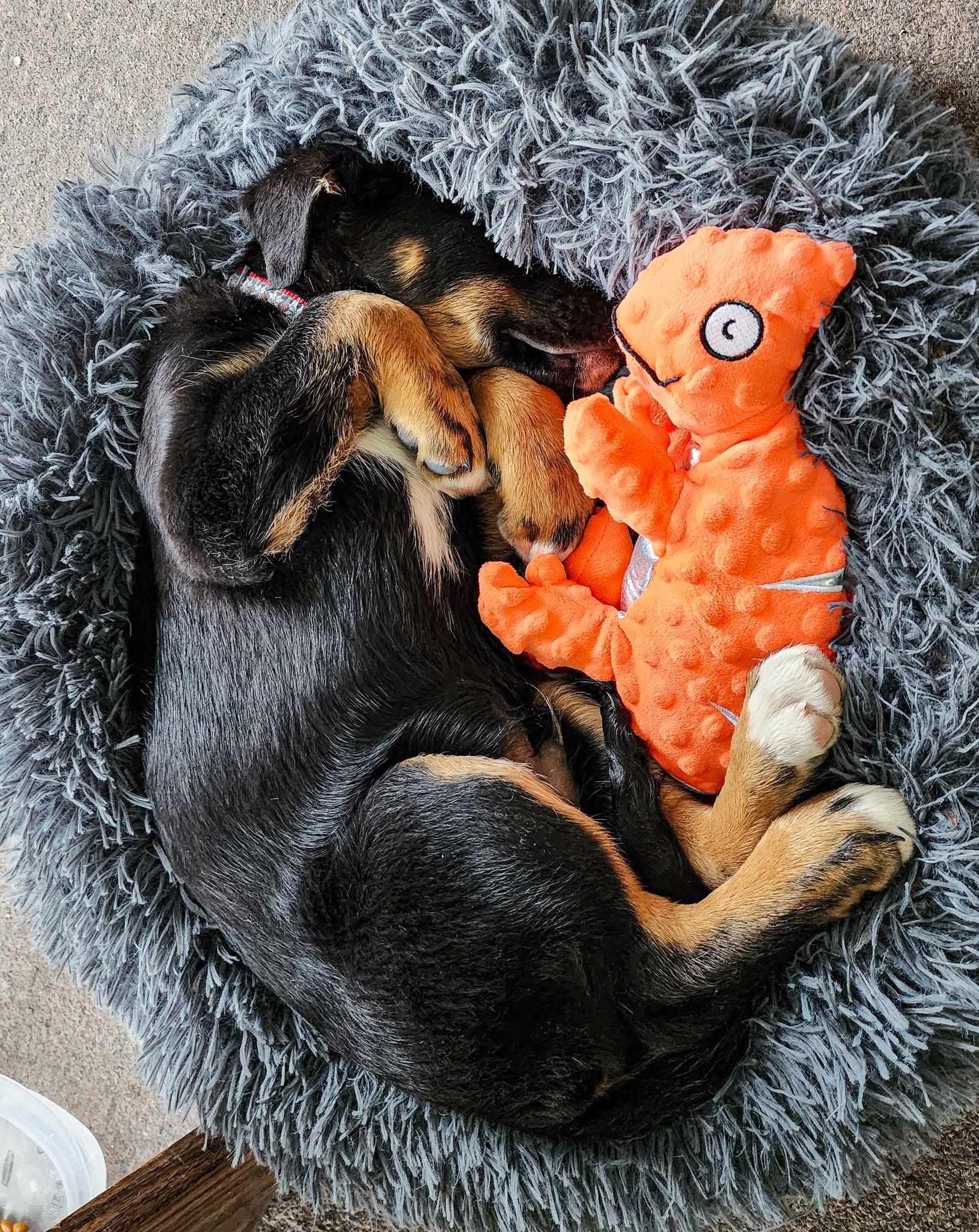 He’s friendly with people and other animals, though new places can make him a bit shy at first. He’s still learning his manners and can be a little pushy with other dogs, but he’s trying and improving daily. With encouragement, he will settle and take naps (eventually).