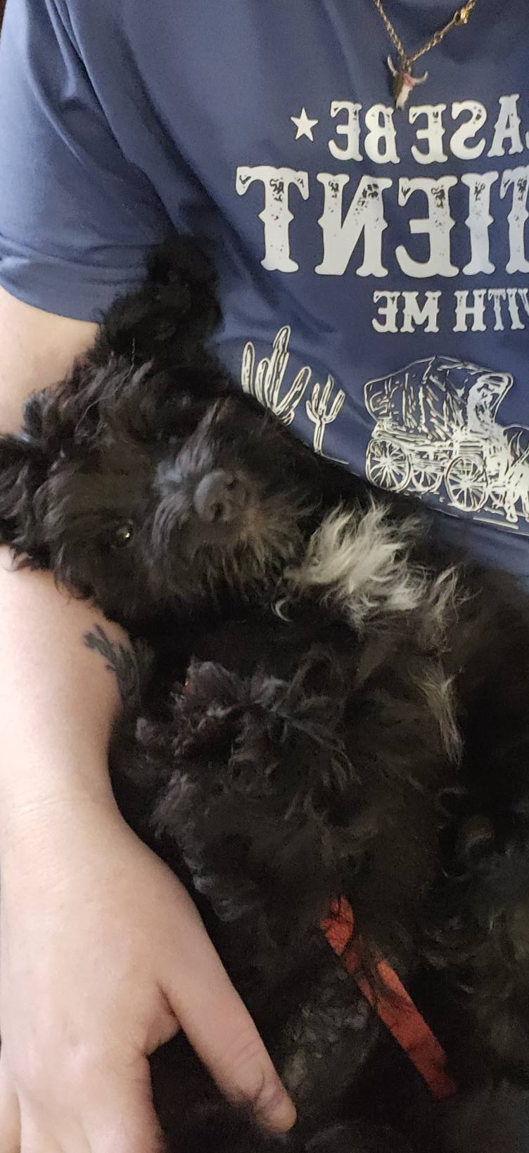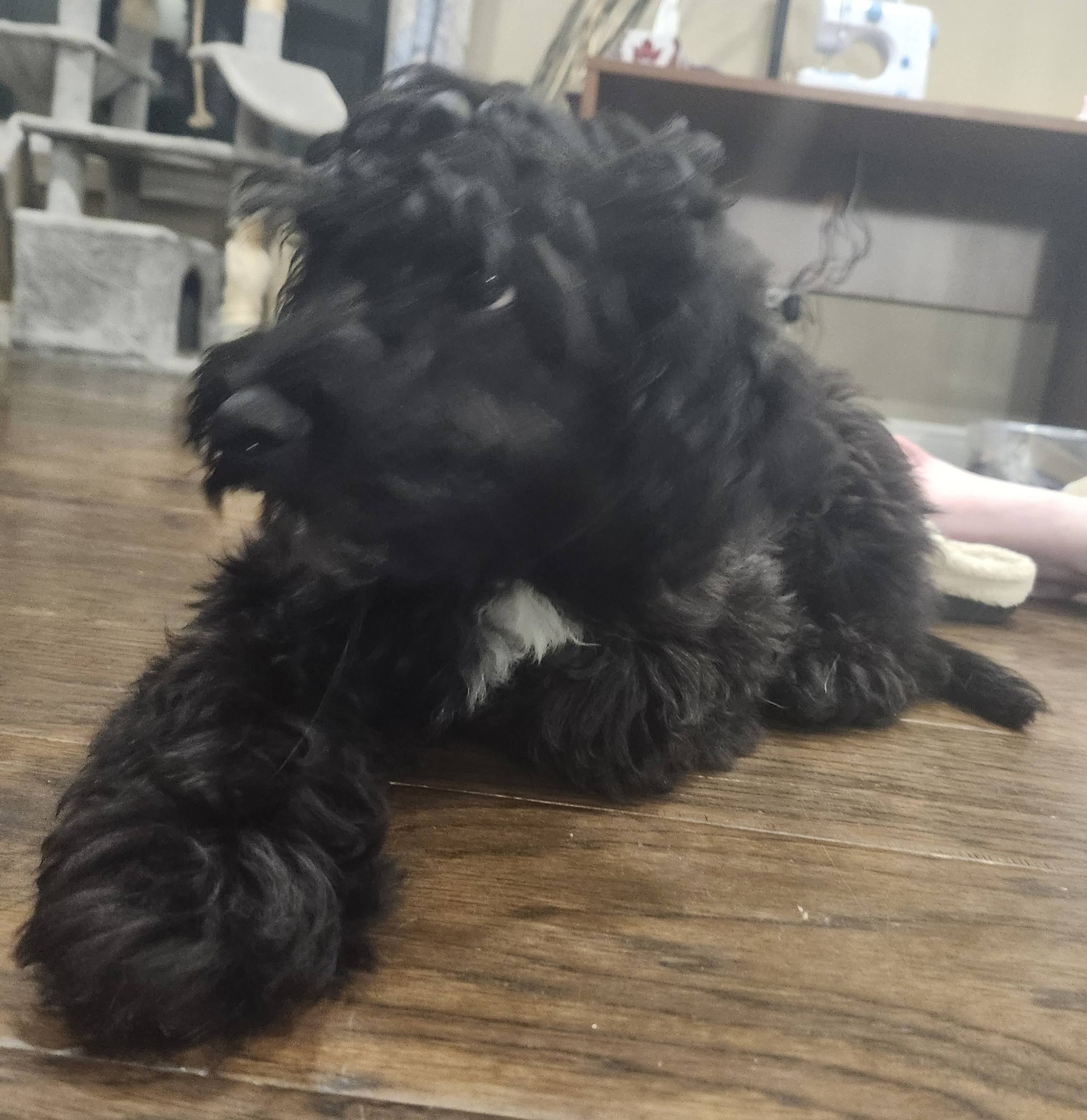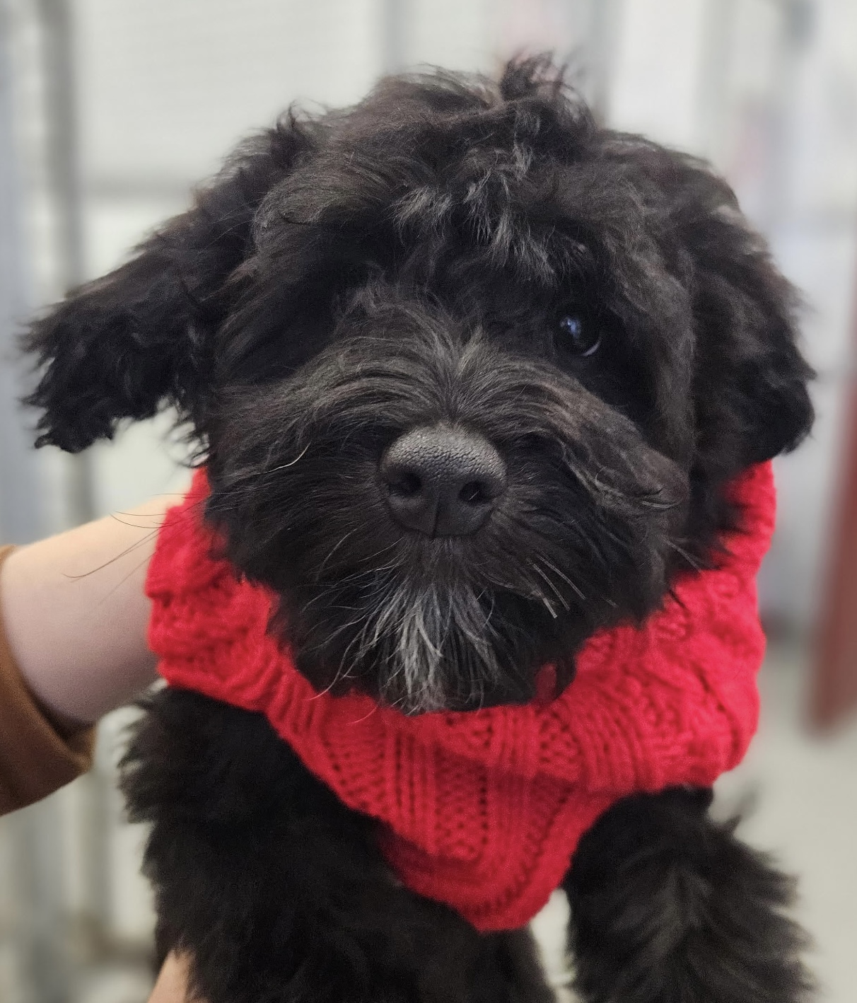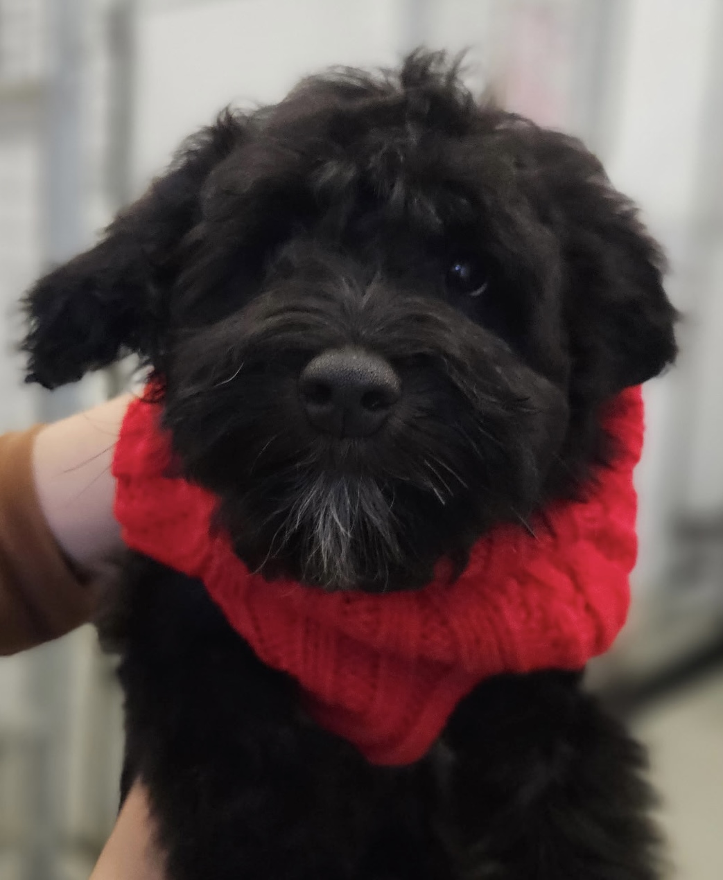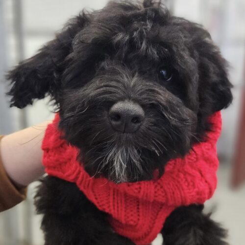 Tiny Tim is a four-month-old Miniature Schnauzer–Poodle. While he may not be quite as bold as his brother Bob Cratchett, he makes up for it with endless sweetness and an easygoing nature.